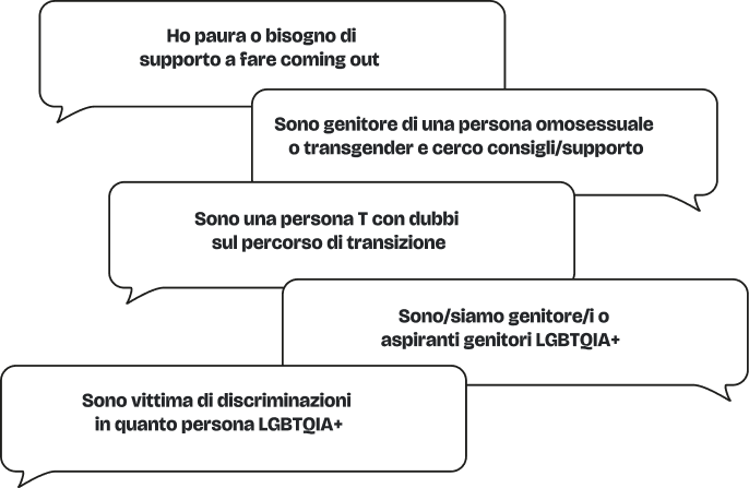 - Un punto di ascolto per familiari/amici che si trovano in difficoltà nell’affrontare e accettare persone LGBTQIA+